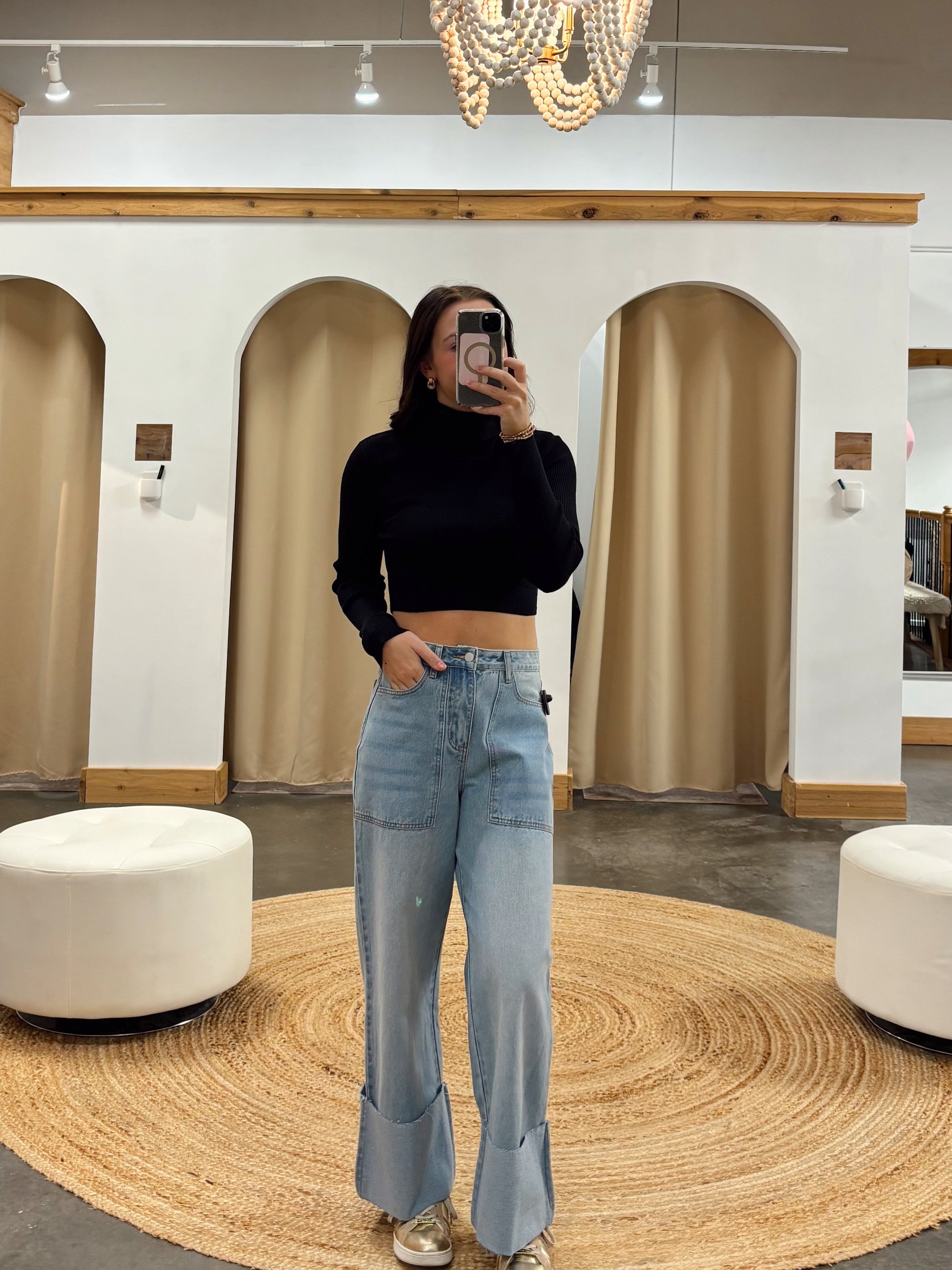 The Emerson Mock Neck Top enhances every wardrobe with its classic mock neck and stretchy-yet-structured fit. The cropped style pairs perfectly with a high-waisted skirt or jeans for a timelessly elegant look. Enjoy effortless sophistication no matter the occasion! Runs true to size. Model wearing a small.